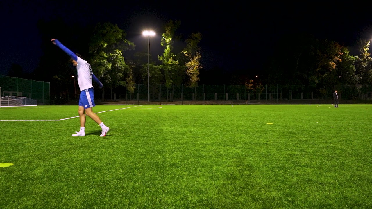 Prowadź piłkę i wykonaj zwód nad piłką przenosząc ciężar ciała na drugą stronę. Wykonaj jak najwięcej powtórzeń w czasie 60 sekund