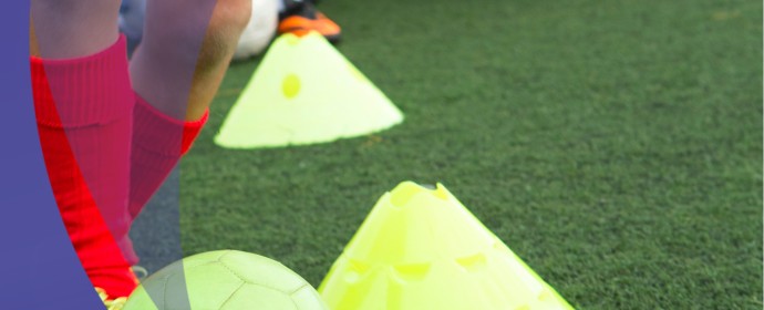 Wykonaj podanie prawą nogą wewnętrzną częścią stopy o bandę, przyjmij piłkę kierunkowo lewą lub prawą nogą a następnie strzel celnie do jednej z trzech małych bramek wskazanych kolorem stożka przez Trenera. Liczy się celność oraz ilość zdobytych goli w 10 próbach.