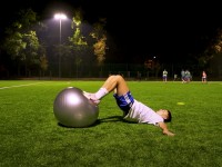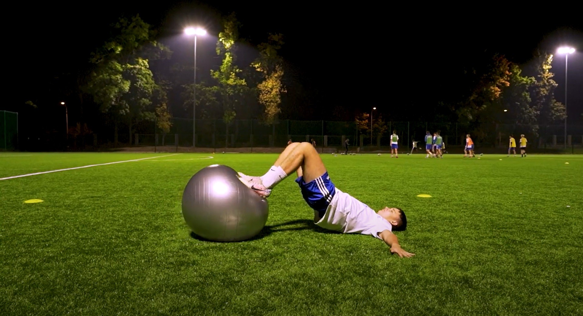 W leżeniu na plecah na podłożu umieść nogi na piłce gimnastycznej do kąta 90 stopni. Twoim zadaniem jest unoszenie pleców. Wykonaj jak największa liczbę powtórzeń w czasie 60 sekund.